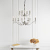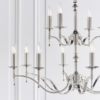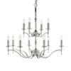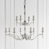 The Stanford Nickel 12-light pendant is an impressive chandelier fitting. Finished in polished nickel plate with angular arms giving it a classical twist on its contemporary styling. Suitable for use in living areas, hallways and reception rooms. Looks especially effective when teamed with decorative filament candle lamps. Available in a choice of sizes and fittings