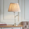 This elegant table light from the Stanford nickel range has a beautifully curved swing arm and simple clean detailing. Its complemented by a pretty, beige organza effect shade and can be adjusted to direct light as required. Matching items available
