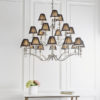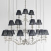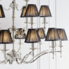 The elegant 21 light pendant from the Stanford nickel range has beautifully curved arms and simple clean detailing. Its complemented by pretty, black organza effect shades. Matching items available