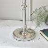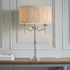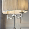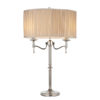 This elegant table light from the Stanford nickel range has beautifully curved arms and simple clean detailing. Its complemented by a pretty, beige organza effect shade. Matching items available