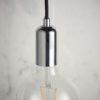 Create that cool urban look with this industrial pendant. Simple in construction with a single smooth chrome plated lamp holder suspended from height adjustable black fabric flex.