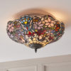 The Sullivan flush ceiling light is a richly coloured floral Tiffany design. Matching items available and compatible with LED lamps