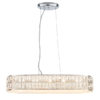 High quality clear crystals adorn this deluxe chrome plated LED contemporary pendant, fully enclosed by a beautiful prismatic glass diffuser. The combination of clear crystals, polished chrome and glass create a luxurious interior decorative light pendant, perfect for positioning over your dining room table. Suspended from thin wire and clear flex with integrated LED light source for bright light output.