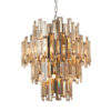 A luxuriant mix of tinted champagne coloured bevelled crystals and polished chrome finish. Lavish in style and impressive in scale, to create the perfect hotel Luxe look. Twin with LED filament lamps for a stunning interior centrepiece.