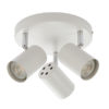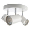 The Arezzo three light round spotlight is adjustable and compatible with GU10 LED lamps. Suitable for commercial or domestic use. Finished in matt white paint with chrome detail, matching items are available.