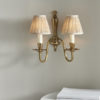 The Asquith twin wall light is a solid brass fitting made to the highest quality, using traditional casting and hand finishing techniques. Complemented by pretty, pleated beige coloured shades. Matching items available