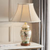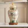 A hand thrown and hand-painted Kutani lamp exquisitely decorated with birds and wisteria. Finished with real gold and placed upon a dark wooden base. This is a base only product but can be teamed with a selection of our Rochamp shades