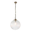 The Brydon ceiling pendant features a ribbed round glass shade hanging from a decorative chain finished in antique brass. Compatible with LED lamps, this fitting can also be dimmed. Choice of size available