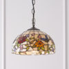 The small Butterfly pendant is a traditional Tiffany design combining flowers and colourful butterflies, made from art glass and teamed with a bronze effect fitting. Compatible with LED lamps and matching items available