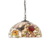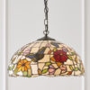 The Butterfly pendant is a traditional Tiffany design combining flowers and colourful butterflies, made from art glass and teamed with a bronze effect fitting. Compatible with LED lamps and matching items available