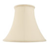 This 10 inch handmade cream lamp shade is shaped in a round bell design and has a double folded trim on the top and bottom. For use with a variety of lamp bases and available in a choice of sizes