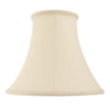 This 12 inch handmade cream lamp shade is shaped in a round bell design and has a double folded trim on the top and bottom. For use with a variety of lamp bases and available in a choice of sizes