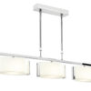 A 3 light bar ceiling fitting in polished chrome, with oval shaped frosted glass shades. Comes with adjustable telescopic rods to change the height of the fitting after installation. Both suitable for use with LED lamps and dimmable