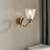 Elegant in appearance and design, this exclusive wall light is finished in antique brass and complemented by a beautiful art deco style glass shade. Matching items available and compatible with LED lamps