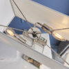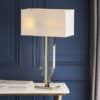 A beautiful table lamp formed from bars of solid crystal that cascade down in a highly stylised art deco waterfall effect, complemented by a cream faux silk shade