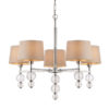 An eye catching combination of chic style and glamour. The Darlaston pendant is finshed in polished nickel and adorned by tinted ribbed glass spheres and silk fabric shades, for a modern boutique hotel look.