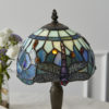 A stunning table lamp with the iconic Tiffany Dragonfly design, in a vivid blues with multi coloured glass beading and teamed with a dark bronze effect fitting. Compatible with LED lamps and matching items available