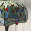 A stunning floor lamp with the iconic Tiffany Dragonfly design, in a vivid blues with multi coloured glass beading and teamed with a dark bronze effect fitting. Compatible with LED lamps and matching items available