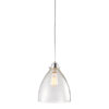 A simple glass non electric pendant with a chrome effect trim. suitable for use with LED lamps, and looks especially effective when used with one of our decorative filament lamps