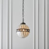 This unusual yet stunning small globe shaped pendant is a beautifully understated design comprising of clean lines and diamond shaped detailing. Teamed with a bronze effect fitting, dimmable and compatible with LED lamps. Matching items available for a coordinated look