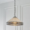 This Tiffany style pendant is a beautifully understated design comprising of clean lines with a diamond shaped border. Teamed with a bronze effect fitting, dimmable and compatible with LED lamps. Matching items available for a coordinated look