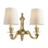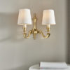 The Fenbridge twin wall light has a classic candle design, made from solid brass with gloss cream candle drips and complemented by vintage white silk shades. Dimmable and compatible with LED lamps. Matching items available