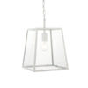 Authentic and timeless, inspired by box lanterns, the Hurst ceiling pendant is the perfect compliment for today’s relaxed classic interiors. Finished in chalk white and suspended from height adjustable chain with light grey fabric flex. Pair with vintage style filament LED lamps that are perfectly framed by the subtle tapered metalwork and large clear glass panels.