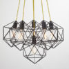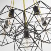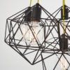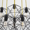 A modern geometric style cluster pendant with a matt black finish and contrasting yellow fabric flex. A stunning focal point in any room.