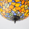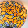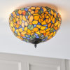 The Josette Tiffany flush ceiling light features brightly coloured flowers in oranges and yellows, highlighted with greens and blues. Teamed with a dark bronze effect fitting and compatible with LED lamps