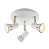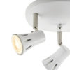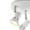 Triple spotlight on a round plate with a gloss white finish. Adjustable to direct light as you need. suitable for use with LED lamps and dimmable. Matching items and other colour options available.