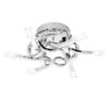 A 6 light semi-flush ceiling fitting with twisted polished chrome arms and clear, rectangular glass shades. Complete with lamp and LV electronic transformer