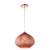 Highly decorative copper plated ‘mercury’ glass pendant light with copper plated metalwork, suspended from height adjustable clear flex. Perfect for use with LED lamps to create a stunning diffused light.