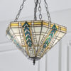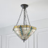 The popular Lloyd Tiffany collection is inspired by the American art deco architect Frank Lloyd Wright. This inverted pendant is created using bevelled glass beading to really catch the light, and teamed with a bronze effect fitting. Dimmable and compatible with LED lamps