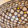 Mille Feux takes its name from the French for thousand lights. This large flush ceiling light uses many pieces of cream tiffany art glass in a geometric pattern, and is inlaid with glass bead work. Dimmable and compatible with LED lamps