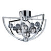 A LED flush ceiling fitting with a polished chrome finish. A mix of clear and chrome balls are suspended from the top of the semi-circle frame, which is lined with integrated LEDs. Other items available in this range