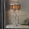 This elegant large polished nickel Oksana table lamp is adored with faceted lead crystal droplets and base, complimented with a chocolate pleated shade with a matching polished nickel trim.