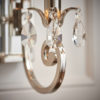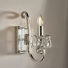 A single wall light from the Oksana nickel range. Features faceted lead crystal droplets hanging from a decorative arm