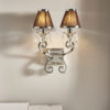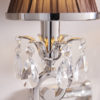 A twin wall light from the Oksana nickel range. Features faceted lead crystal droplets, two decorative arms and chocolate brown pleated shades with a polished nickel trim. Matching items available and compatible with LED lamps