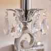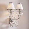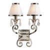 A twin wall light from the Oksana nickel range. Features faceted lead crystal droplets, two decorative arms and white pleated shades with a polished nickel trim. Matching items available and compatible with LED lamps