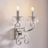 A twin wall light from the Oksana nickel range. Features faceted lead crystal droplets hanging from two decorative arms
