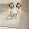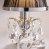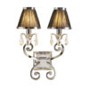 A twin wall light from the Oksana nickel range. Features faceted lead crystal droplets, two decorative arms and black pleated shades with a polished nickel trim. Matching items available and compatible with LED lamps