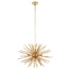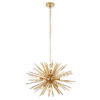 Following the 70’s trend this Sputnik style pendant light is finished in satin gold finish. 9 lights are scattered among the metal spikes creating a stunning centrepiece. This product is fully dimmabl