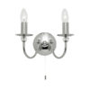 This twin wall light has glass sphere detailing and a shiny chrome effect finish. Dimmable and supplied with a pull cord switch. Matching items available