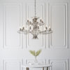 The Penn is a decorative range featuring sweeping, curved arms. This impressive 18 light pendant is finished in a polished nickel plate