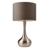 The Piccadilly is a stylish table light with a satin nickel plate and a dark grey fabric shade. Clever touch technology for operating and dimming. Other colour options available