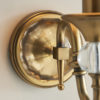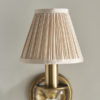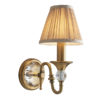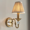 The Polina antique brass wall light is an elegant addition to any room. Finished in an antique brass plate with crystal glass detailing and a beige organza effect shade to give it an opulent feel