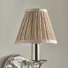 The Polina nickel wall light is an elegant addition to any room. Finished in polished nickel with crystal glass detailing and teamed with a beige organza effect shade to give it an opulent feel