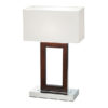 The Portal table lamp mixes dark wood with polished chrome on the base, along with a cream faux suede shade. Supplied with an inline switch and suitable for use with LED lamps