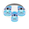 The Rita is a 3-light flush fitting with colour changing LEDs. Supplied with an RGB remote control to easily change the colour effect which can be set to change in sequence, or manually changed to any one colour. Can be moved through red, green and blue or mixed to create pinks, purples etc. It is possible to link up to 8 light fittings to a single remote control. Features a polished chrome effect back plate supporting frosted acrylic shades. Also comes in a 5-light fitting