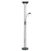 A tall 2 light floor lamp with a double stand supporting an uplighter as well as an adjustable branch holding a reading lamp. Has a gunmetal finish and is complete with a double rotary dimmer switch. Other colour options available